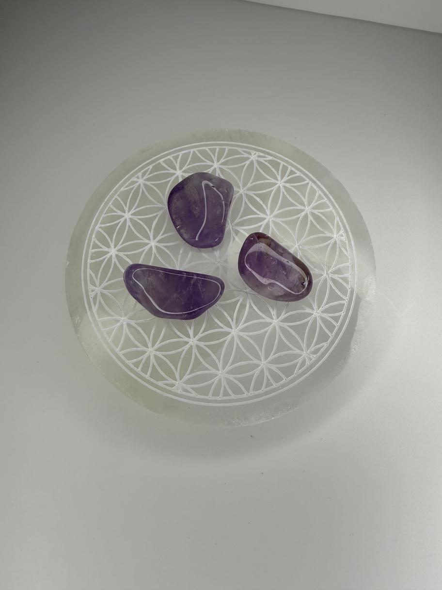 La Fleur de Vie gravée amplifie la vibration de la Sélénite et dynamise les objets posés dessus.
